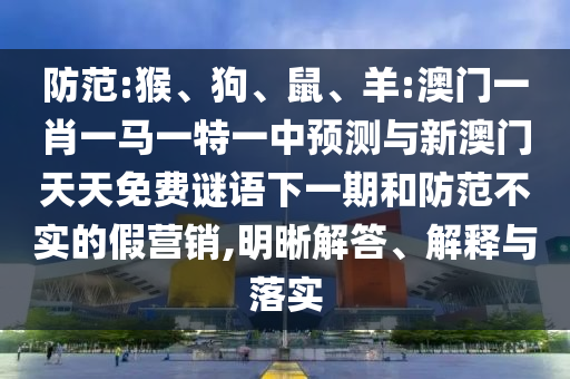 提防:猴、狗、鼠、羊:澳门一肖一马一特一中展望与新澳门天天免费谜语下一期和提防不实的假营销,明晰解答、诠释与落实