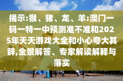 猴、猪、龙、羊:澳门一码一特一中展望准禁绝和2025年天天游戏大全:全景解答、专家解读诠释与落实