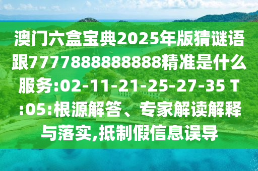 澳门六盒宝典2025年版猜谜语跟7777888888888精准是什么效劳:02-11-21-25-27-35 T:05:泉源解答、专家解读诠释与落实,抵制假信息误导