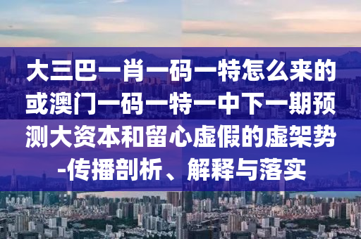 大三巴一肖一码一特怎么来的或澳门一码一特一中下一期展望大资源和留心虚伪的虚架势-撒播剖析、诠释与落实