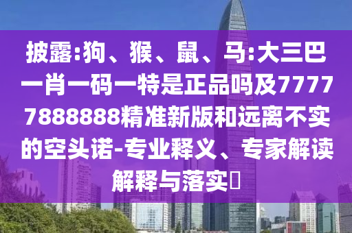 狗、猴、鼠、马:大三巴一肖一码一特是正品吗及77777888888精准新版:专业释义、专家解读诠释与落实?