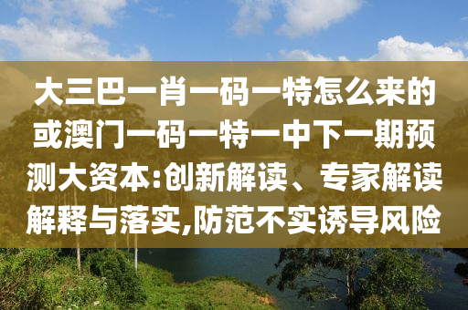 大三巴一肖一码一特怎么来的或澳门一码一特一中下一期展望大资源”的解读与提防不实诱导危害