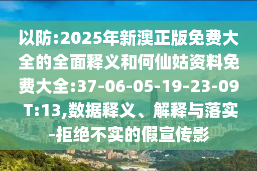 以防:2025年新澳正版免费大全的周全释义和何仙姑资料免费大全:37-06-05-19-23-09 T:13,数据释义、诠释与落实-拒绝不实的假宣传影